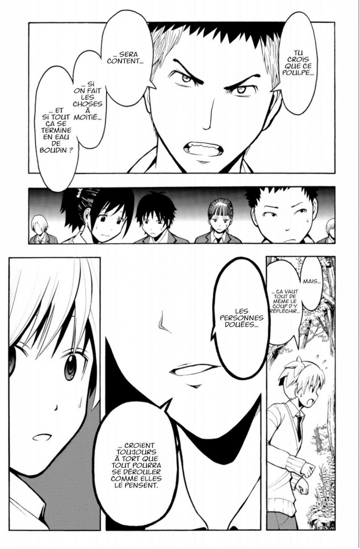 Alors que la mission d’assassinat de M. Koro approche de son dénouement, les élèves de la classe E vont se diviser en deux camps ! Une ambiance inquiétante va également s’installer entre Nagisa et Karma qui, jusqu’à présent, s’entendaient étrangement bien malgré leur grande différence de caractère...
