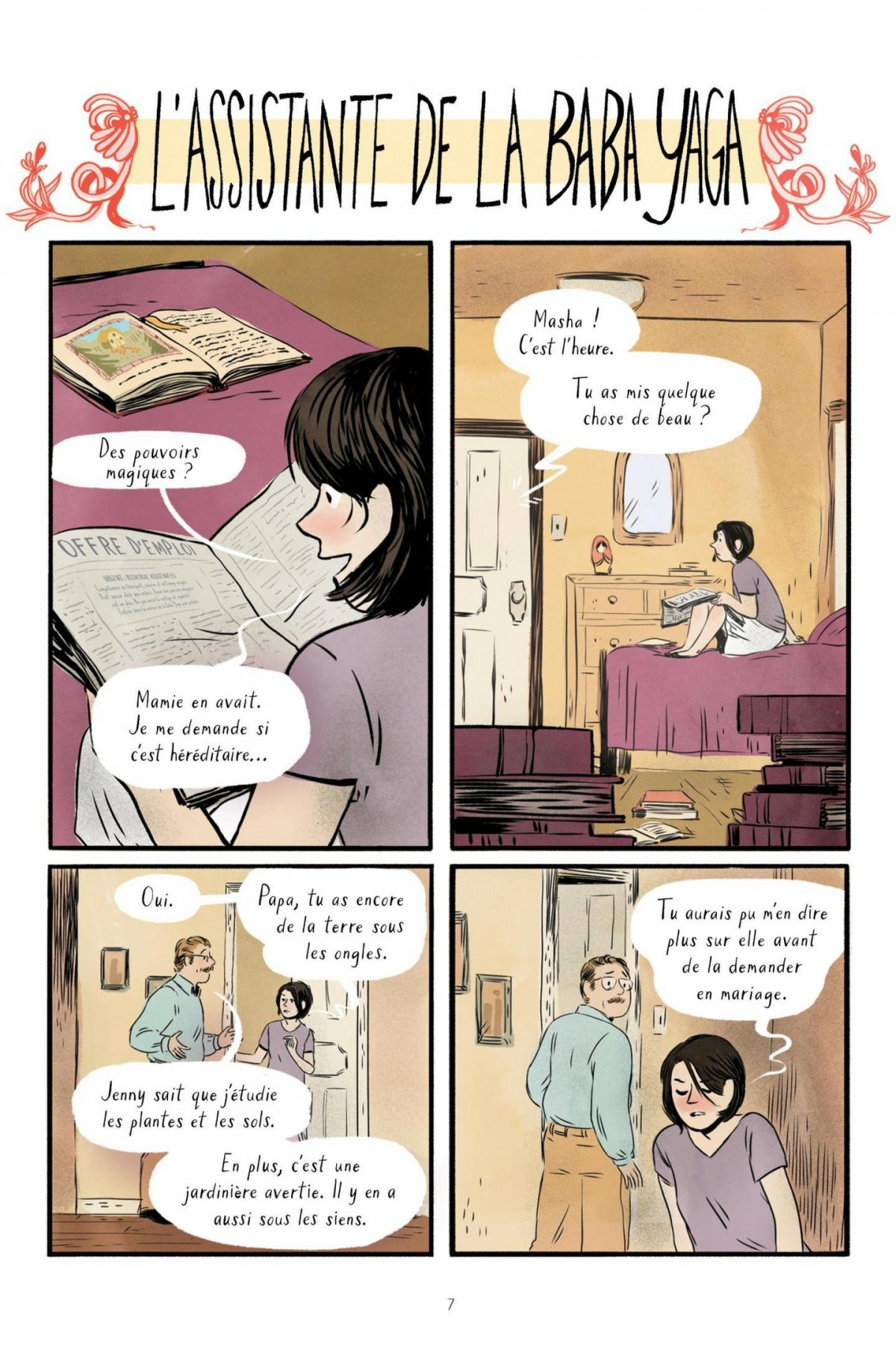 « URGENT : RECHERCHE ASSISTANT(E) Compétences en transport, cuisine et nettoyage exigées.Doit savoir obéir aux ordres. Avoir des pouvoirs magiques est un plus.Ne pas avoir le vertige est impératif. Entrez dans la maison de la Baba Yaga pour postuler. » La plupart des enfants réfléchissent à deux fois avant de pénétrer dans une forêt hantée, remplie de créatures terrifiantes, et d’affronter la sorcière qui y habite... mais pas Masha. Sa chère grand-mère lui a appris beaucoup de choses : les contes sont utiles,la magie est capricieuse.Rien n’est jamais trop difficile dans la vie. Il n’existe rienqui ne puisse être arrangé
