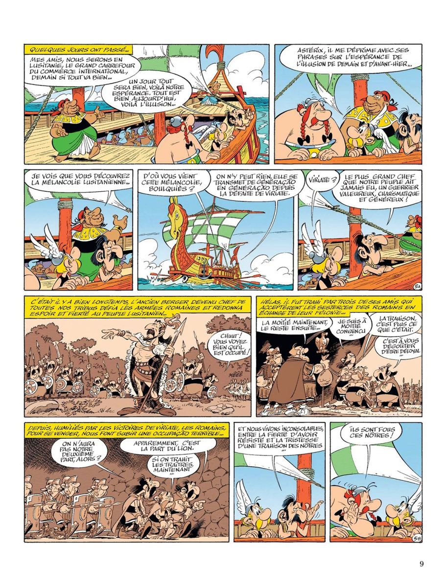 Par un beau matin de printemps, un inconnu débarque au village. Il arrive de Lusitanie, cette terre de soleil à l’ouest de l’Hispanie qui se trouve également sous la férule de Rome. Cet ancien esclave croisé dans le Domaine des dieux est venu demander de l’aide à nos irréductibles Gaulois car il connaît les effets puissants de la potion magique.