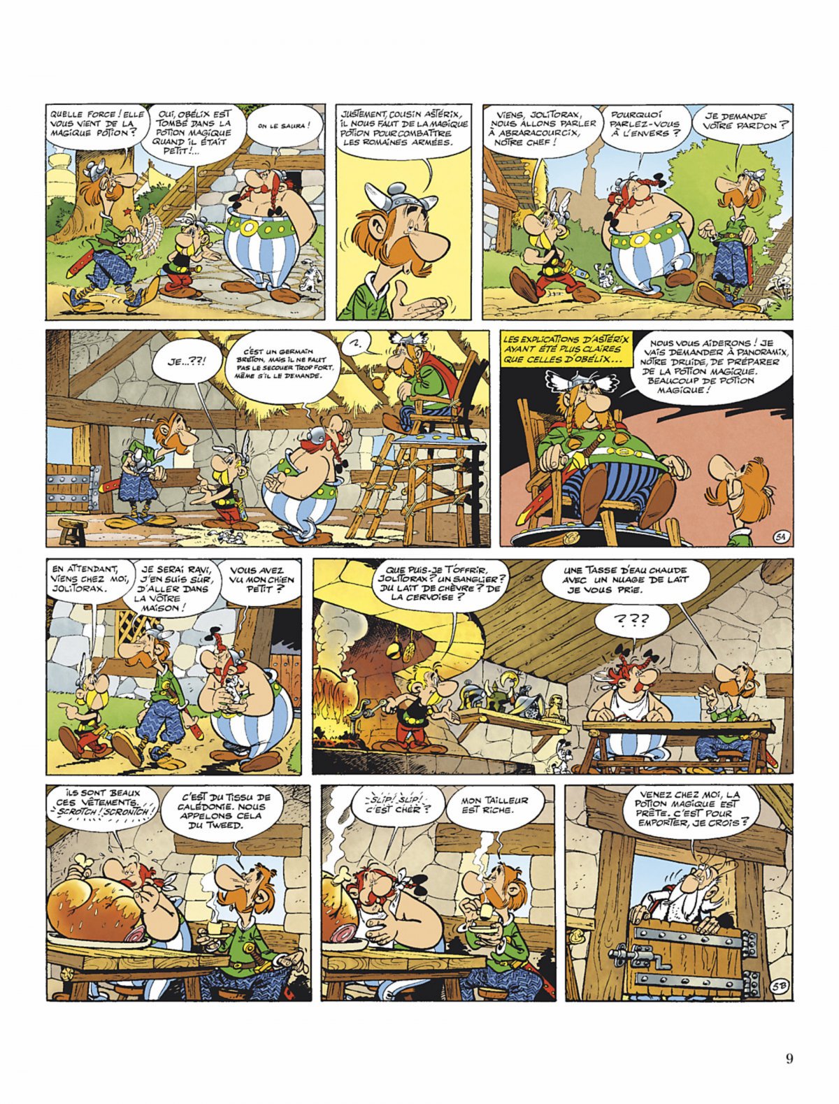 Commence alors pour les deux amis un périple au pays où on parle à l’envers, on boit la cervoise chaude, on sert le sanglier bouilli et on joue au rugby (pour le plus grand plaisir d’Obélix)