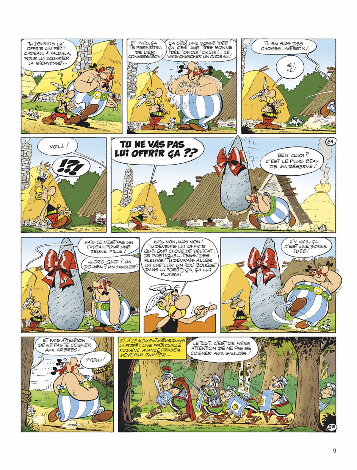 Obélix n’a plus d’appétit, il est comme absent, au point de ne pas voir les arbres devant lui qui s’écroulent sur son passage, au grand désarroi d’Idéfix. Que se passe t-il ? Il est a-mou-reux ! Seulement voilà que Falbala, la belle gauloise élue de son coeur, pleure son fiancé Tragicomix, enrôlé de force dans la légion romaine. Pour noyer son chagrin, Obélix décide de s’engager à son tour dans la Légion, avec son ami Astérix, histoire de montrer à Falbala combien il est courageux. Les histoires d’amour finissent mal, en général..