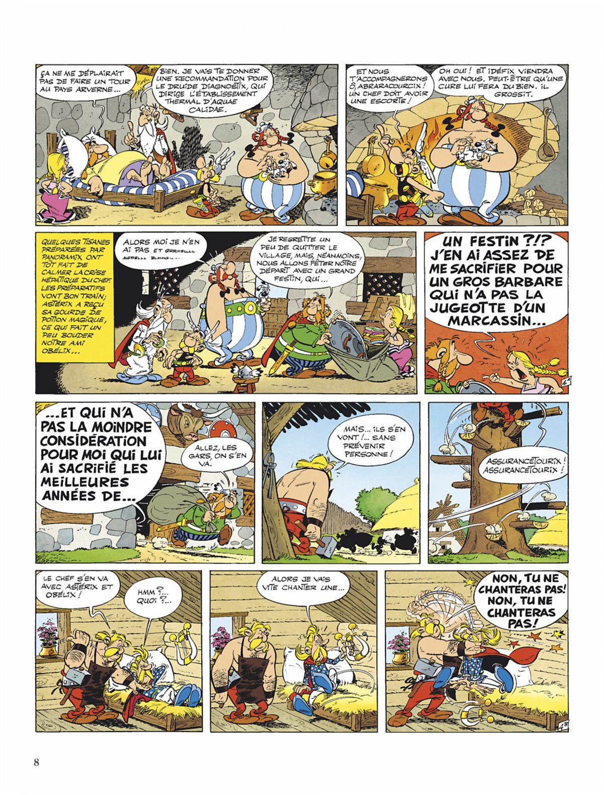 Suite à une terrible crise de foie, Abraracourcix, le chef du village, se voit condamné à la plus cruelle des punitions pour un Irréductible Gaulois : la diète ! Mais Panoramix est catégorique, une cure dans la ville d’Aquae Calidae (Vichy) s’impose. Pour Astérix et Obélix c’est une bonne occasion de faire un peu de tourisme dans le pays arverne. Mais César n’est pas loin, et recherche dans ces lieux historiques le bouclier de Vercingétorix pour défiler en triomphe devant des arvernes soumis. Pour Astérix, c’est une affaire d’honneur : il faut retrouver ce bouclier avant les troupes de Jules César !