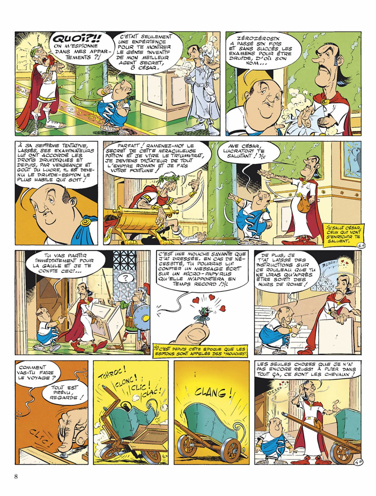 Pris de panique, Panoramix s’effondre. Les réserves d’huile de roche, ingrédient essentiel de la potion magique, sont vides. Astérix et Obélix, suivis de près par le druide espion Zérozérosix et sa mouche savante, s’embarquent pour un long voyage, à la recherche de l’huile de roche. Tyr, Jérusalem, Bethléem, les rivages de la mer Morte et les plaines désertiques : Albert Uderzo, même à court de petra oleum, ne manque pas d’idée pour faire rire et rêver !