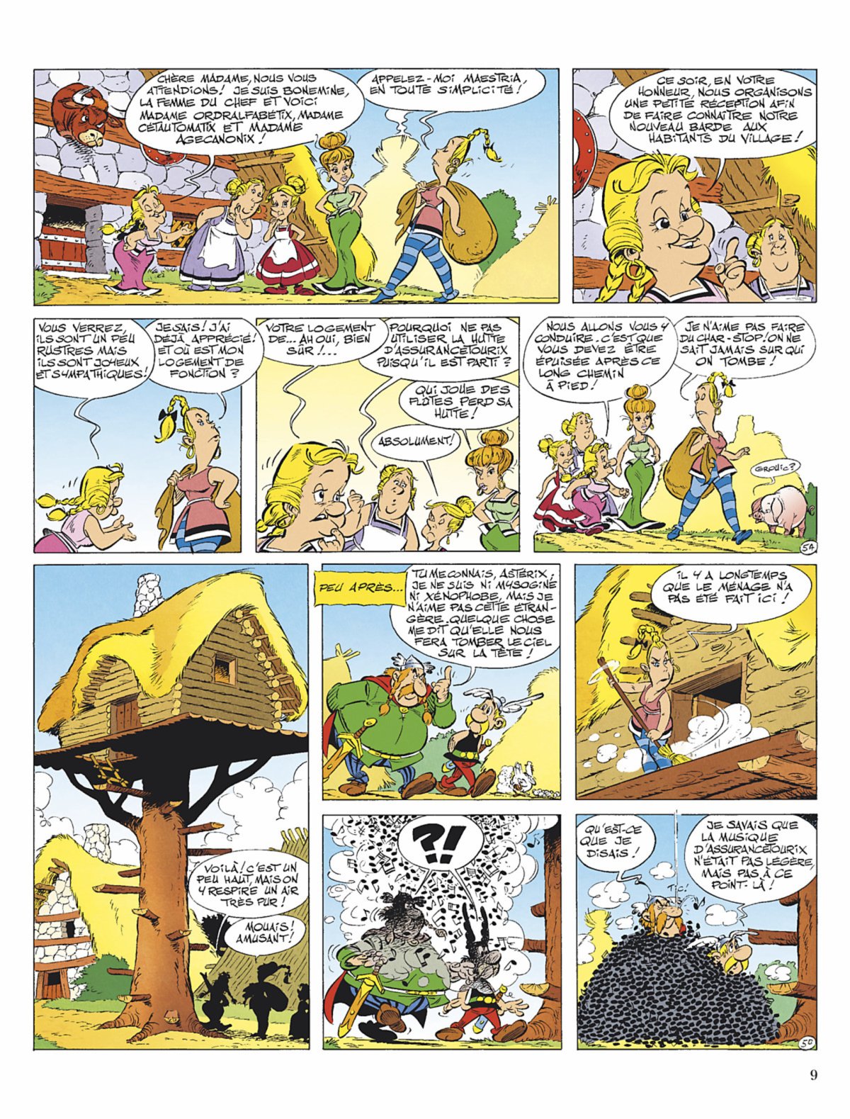 C’est la révolution au village d’Astérix ! Maestria, barde féminine, pousse ses soeurs gauloises à dire non à la tyrannie masculine. La révolte gronde, les villageoises portent des braies, et Mimine veut siéger au Conseil du Village. L’armée romaine elle-même soumet ses légions aux règles de la parité... La légendaire galanterie gauloise à l’épreuve des faits, vue par un Albert Uderzo plus en verve que jamais !