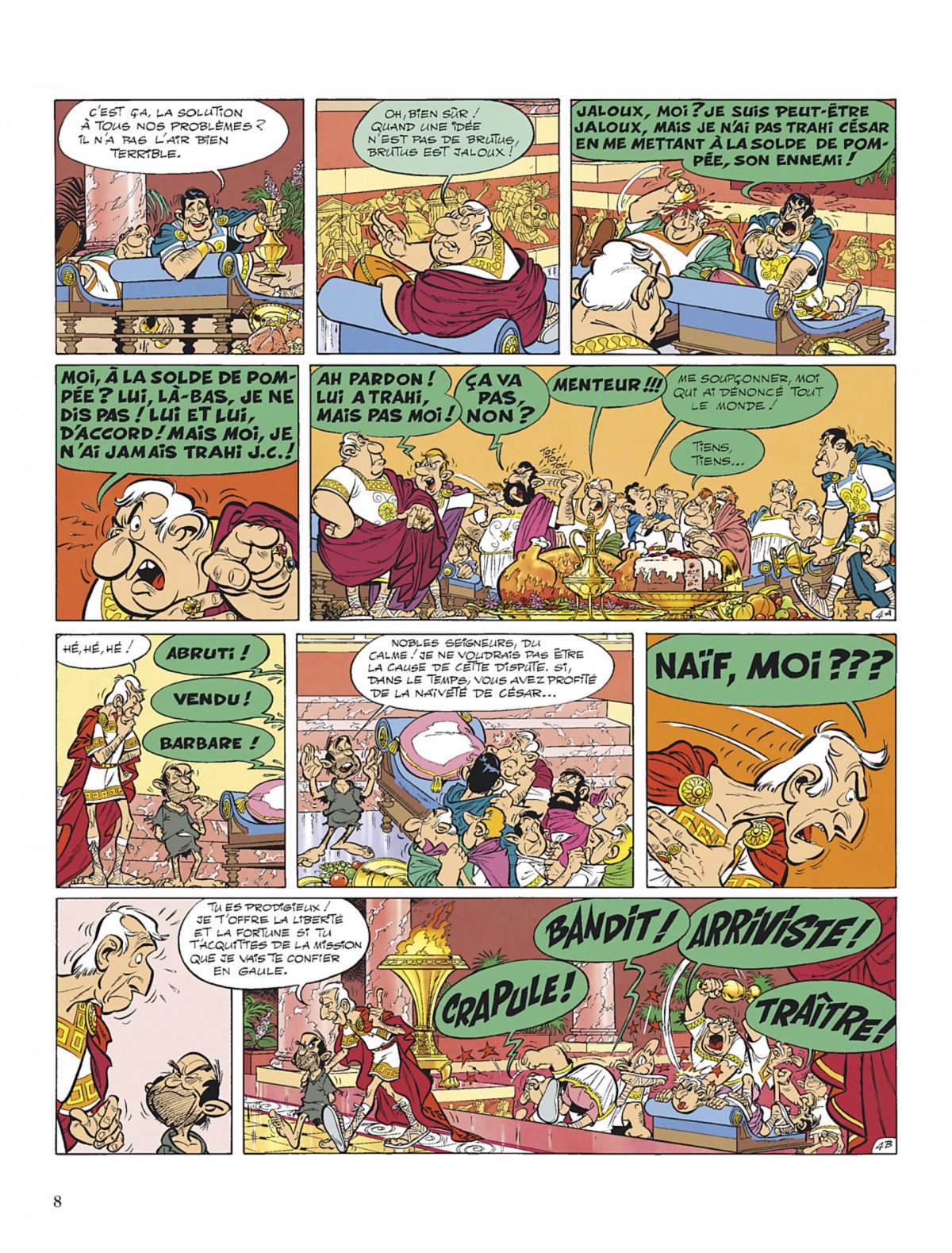 César cherche encore et toujours à faire disparaître le petit village gaulois. Cette fois-ci, il envoie Tullius Détritus, un romain peu recommandable, qui a le don de semer la zizanie partout où il passe. Et effectivement, après une « guerre psychologique » finement menée, il arrive à semer la zizanie dans le petit village gaulois, en faisant notamment croire qu’Astérix a vendu le secret de la potion magique aux Romains contre un vase rempli de pierres précieuses. Heureusement, malgré la crédulité des habitants du petit village, la sagesse d’Astérix et de Panoramix parviendra à retourner la calomnie contre son auteur.