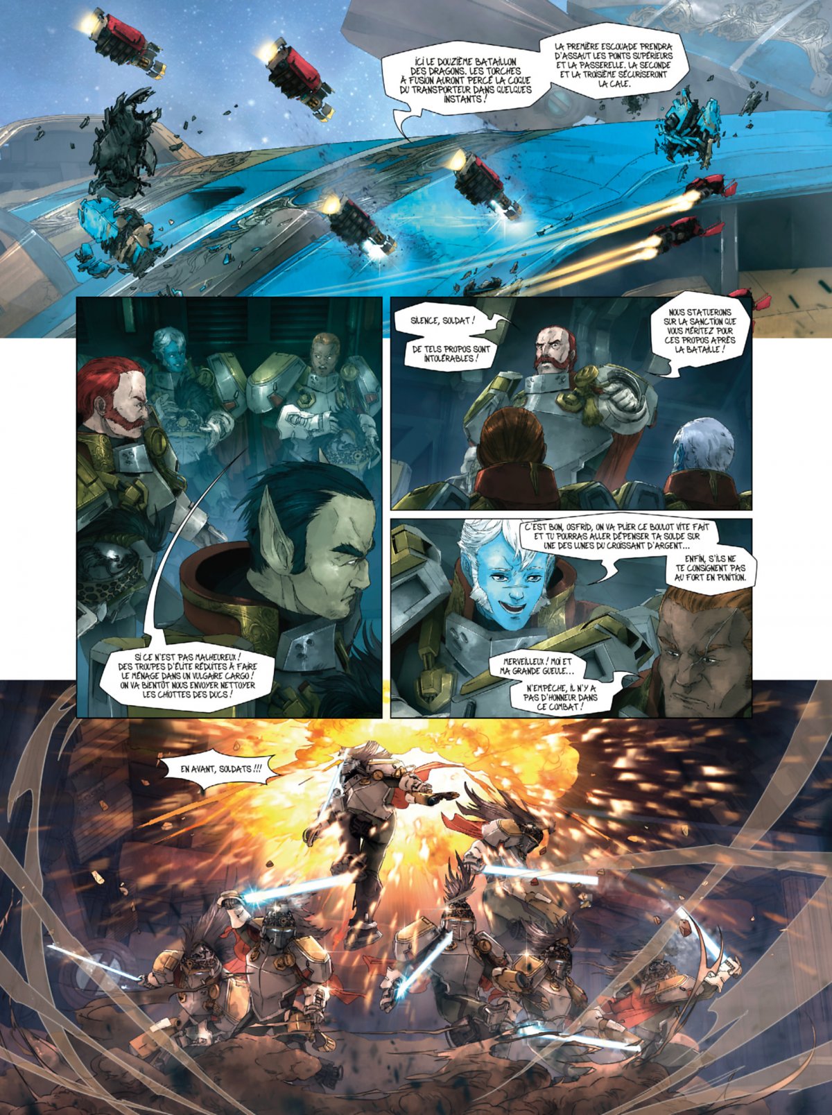 Un cargo spatial traverse l’espace profond. A son bord une cargaison des plus précieuses qui ne doit surtout pas tomber entre de mauvaises mains car les forces politiques qui régissent la galaxie pourraient changer drastiquement de camps et ainsi le cours de l’histoire. Une escouade de soldats dragons mandatée par l’empire aborde le cargo et perce sa coque épaisse en quête de l’Or Sacré.