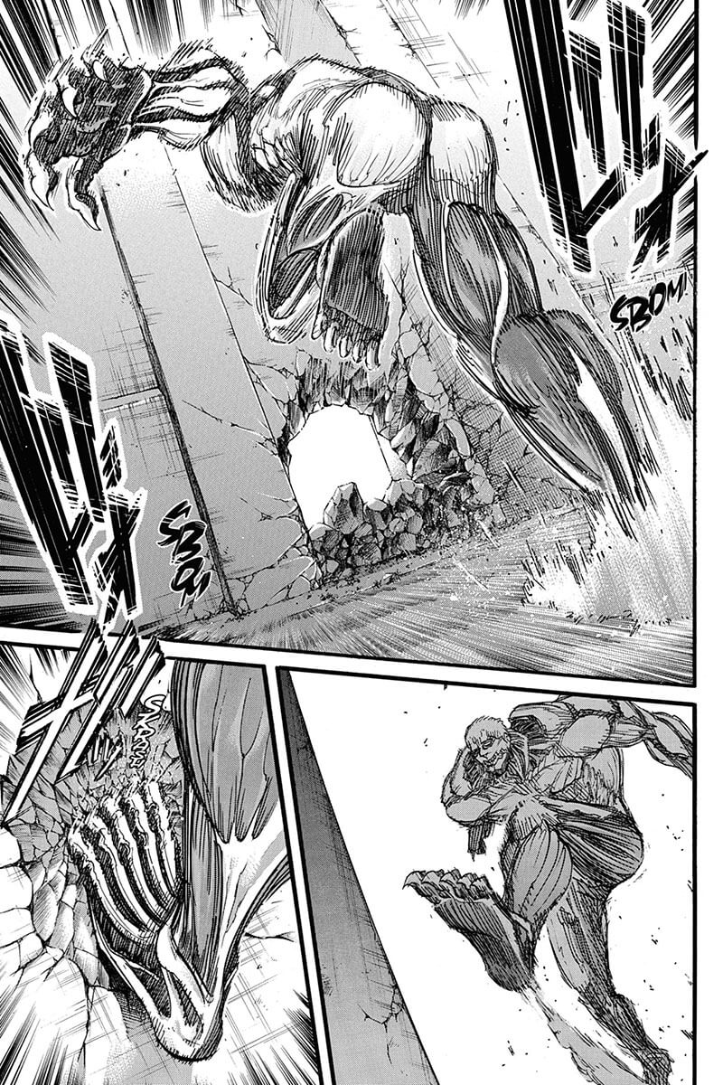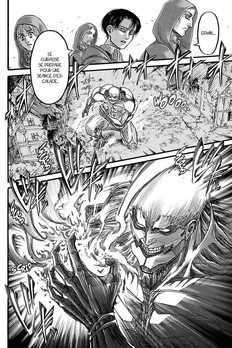 Le bataillon d’exploration arrive au mur Maria pour reboucher, grâce à la faculté de "durcissement" d’Eren, la partie détruite cinq ans plus tôt par les titans. L’opération réussit, mais alors qu’ils s’apprêtent à passer à la phase suivante, l’ennemi surgit et bloque leur seule voie de repli. Une bataille décisive s’engage à présent !