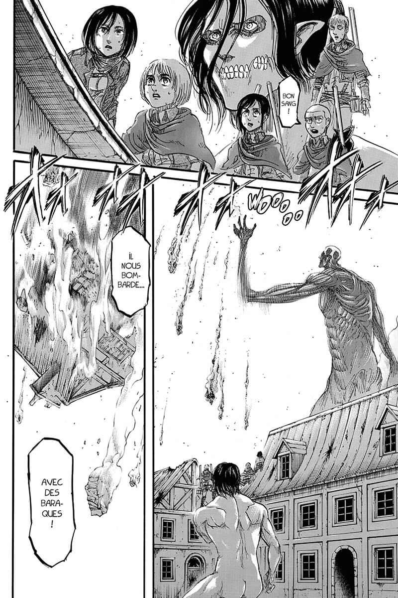 Bien décidé à découvrir le secret sommeillant dans le sous-sol de la maison Jäger, le Bataillon d’exploration doit avant tout reprendre le mur Maria, et livre pour cela une lutte acharnée contre Reiner, Bertolt et le Titan bestial.