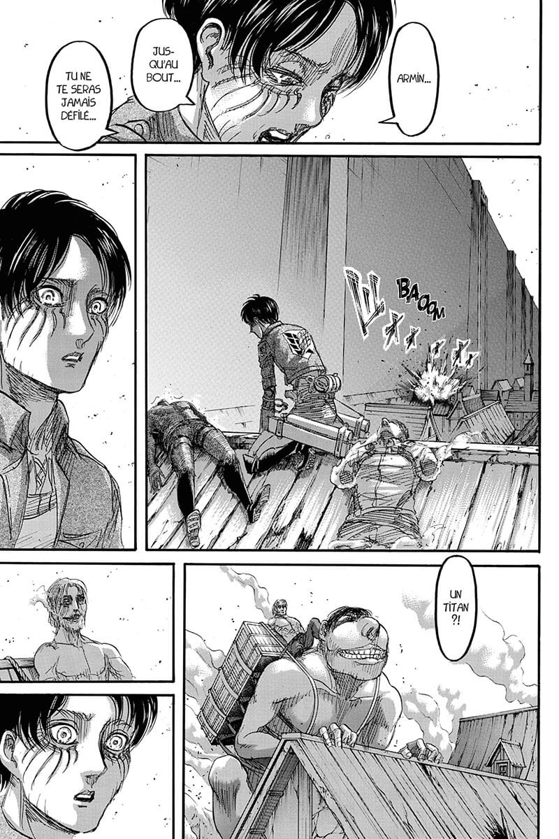 Erwin et Armin se sont sacrifiés pour permettre à leurs camarades de vaincre Reiner, Bertolt et le Titan bestial. À présent, quelle nouvelle découverte attend les survivants ?