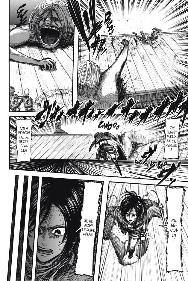 Eren se trouve au coeur d’une opération militaire inédite : métamorphosé en Titan, il est chargé de colmater la brèche ouverte dans le mur Rose à l’aide d’un gigantesque morceau de roche. Alors que la survie de l’Humanité dépend de la réussite de ce plan audacieux, Eren perd pied et devient totalement incontrôlable. Les adjurations d’Armin ne semblent pas le ramener à lui...