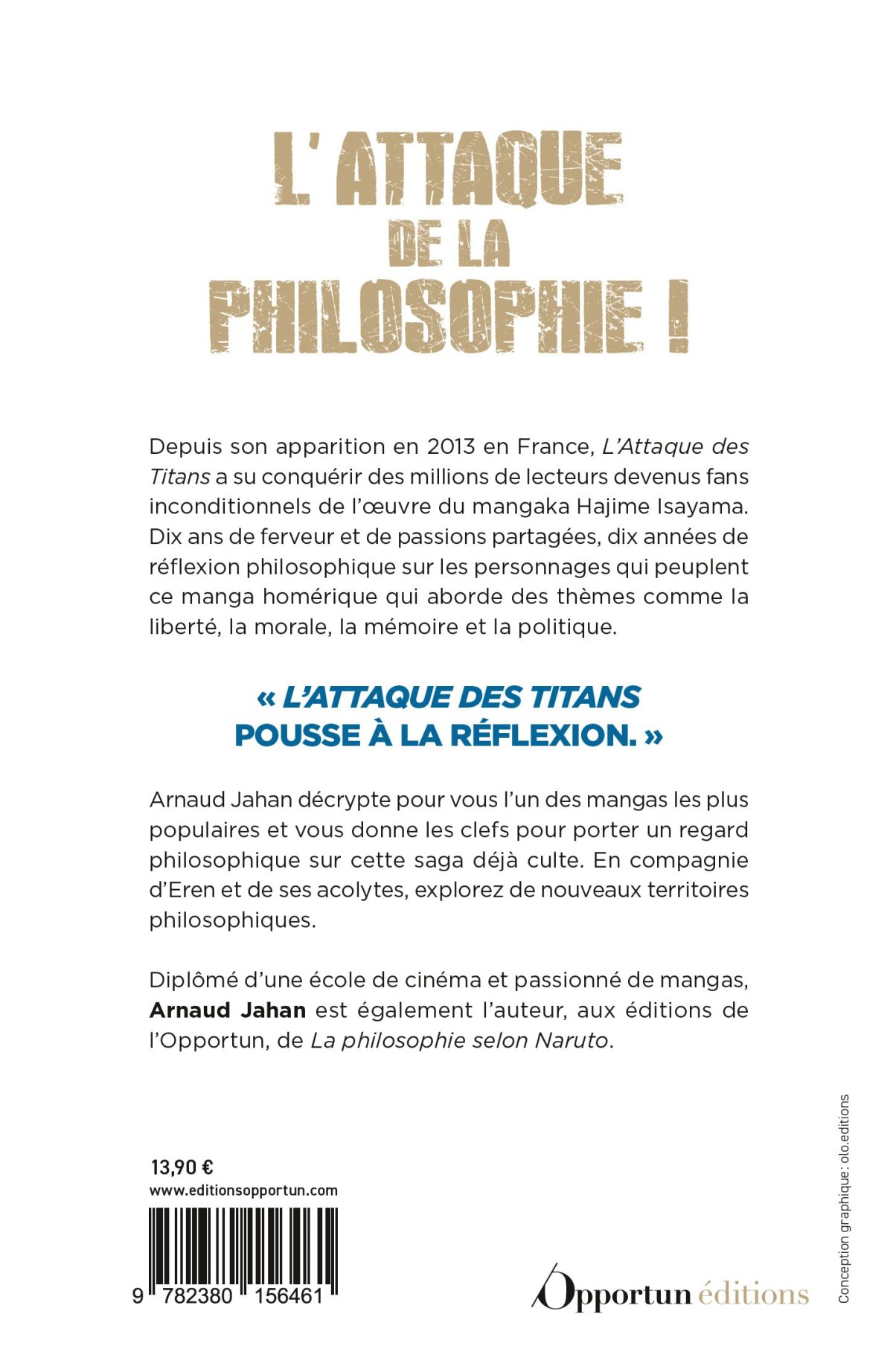 Attaque des Titans (L’) - La philosophie est un album oneshot de Arnaud Jahan, paru en 2023. Selon nos informations, il n'en existe qu'une seule édition, publiée par Opportun (L’).