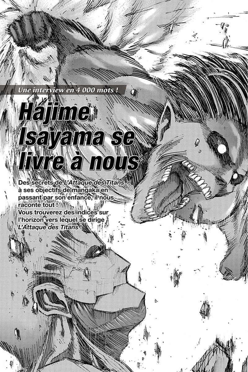 Attaque des Titans outside (L’) est un volume de la série Attaque des Titans (L’) par Hajime Isayama, paru en 2015. Selon nos informations, il n'en existe qu'une seule édition, publiée par Pika.