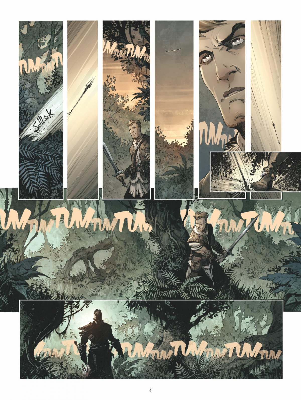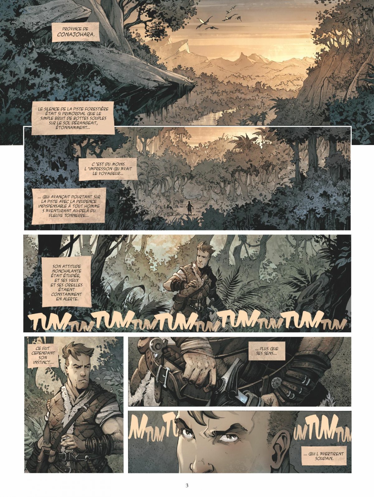 « La civilisation n’est pas naturelle. Elle résulte simplement d’un concours de circonstances. » Le pays picte est une jungle obscure où la frontière entre civilisation et barbarie est mince. Une seule chose la symbolise : la rivière noire, dont on prétend qu’aucun homme blanc n’a pu la traverser et en revenir vivant. Aucun, sauf Conan. C’est au coeur de cet enfer vert que le Cimmérien fait la rencontre de Balthus, un jeune paysan volontaire qu’il sauve in extremis des griffes de farouches guerriers pictes. Ensemble, ils tenteront de prêter main forte aux colons qui se sont établis ici, sur ces terres hostiles, dans le dernier bastion de la civilisation. Avec une dizaine d’hommes, ils vont devoir retrouver le puissant sorcier Zogar Sag avant qu’il ne réussisse à unir les clans et engager son invasion sanglante...Les auteurs de La Licorne redonnent vie à Au-delà de la rivière noire, réputée comme l’une des meilleures histoires de Conan. Un récit survivaliste et guerrier emporté par le rythme implacable du scénario de Mathieu Gabella et la force du trait d’Anthony Jean.