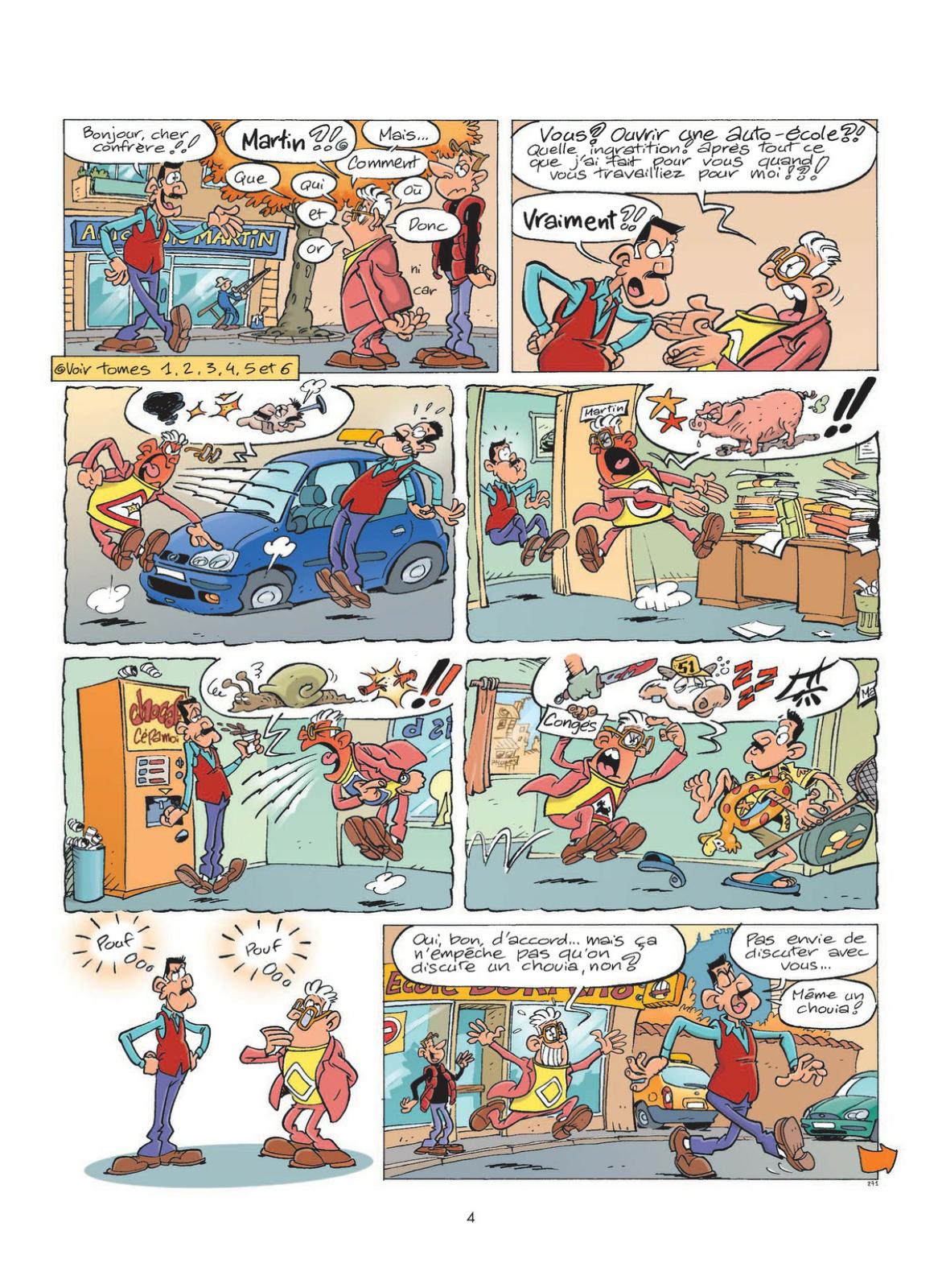 Monsieur Bokréno va péter une durite. Martin, son ancien employé souffre-douleur, dépasse les bornes. Il vient d’ouvrir une auto-école concurrente à 10 mètres de son pas-de-porte. Autant dire que les moniteurs sont attendus au tournant pour maintenir le chiffre d’affaires. Dorénavant, c’est avant l’accident que Gérard réveille l’élève narcoleptique. Sandrine dévoile la carrosserie en exerçant en petite robe légère. Et pour la moto, Roberta inaugure des cours en wheeling afin d’économiser les pneus avant. Bref, ce n’est pas demain la veille que l’auto-école Bokréno se reconvertira dans la vente de voiturettes sans permis !