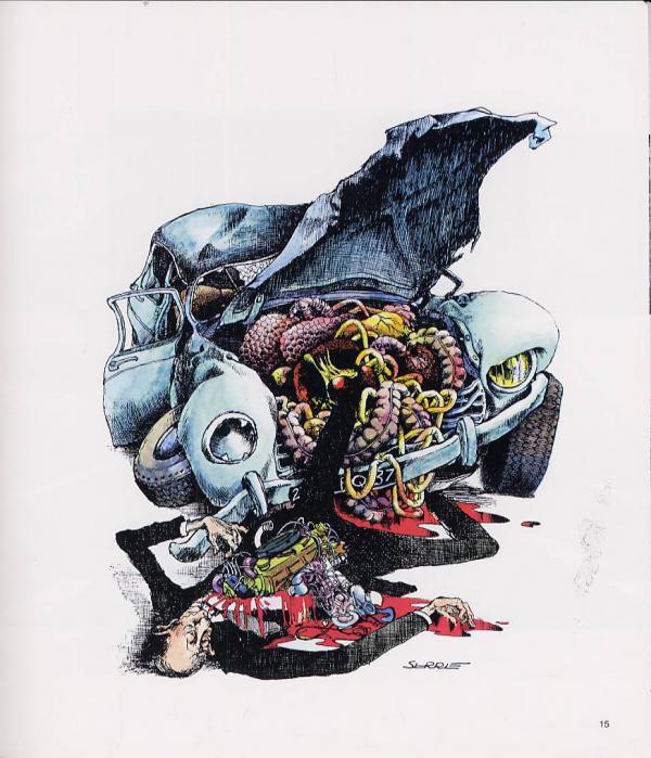 Que celui qui n’a jamais souri à un dessin de Claude Serre se dénonce et sorte immédiatement ! Mais cela ne peut exister. Comment rester insensible, alors que sous nos yeux s’étalent la vacuité et l’absurdité de l’humanité avec un humour imparable ? De nous, en somme ! A travers des dizaines d’illustrations, cet auteur de talent a réussi à nous faire rire de nos travers, épinglés de manière si cruellement juste. Et c’est tout aussi cruellement que Claude Serre a tiré sa révérence, ironiquement, un vendredi 13 de l’année 1998. A présent, il nous reste ses planches où le talent de l’exécution n’est surclassé que par la finesse des gags : et l’un et l’autre sont au top niveau. Les éditions Glénat rééditent peu à peu les recueils qui firent son succès en grand format pour apprécier à sa juste valeur ce travail qui tient à la fois de l’orfèvrerie et de l’entomologie. Réunis en ouvrages thématiques, les dessins de Serre qui représentent près d’un millier de dessins la plupart édités aux Editions Glénat sont marqués d’un humour absurde et ravageur, et en disent long sur notre société, sur les manies et les défauts de chacun. Sans jamais donner de leçon, Serre vise juste et bien, et nous invite à rire de nous mêmes. Aujourd’hui, « L’automobile » est paré de ses plus beaux atours. Le lecteur pourra donc s’y retrouver dans un miroir déformant, qu’il soit conducteur occasionnel ou damné de la route !