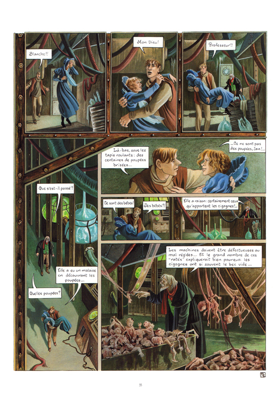 Jan qui pilote un aéronef voit soudainement tout s’éteindre autour de lui : le tableau de bord de l’appareil mais encore le ciel et ses étoiles. Il se réveille sur un lit d’hôpital : où est-il et que lui est-il arrivé ? Aidé par Blanche, sa charmante infirmière et l’extravagant professeur Abler (dont tous se moquent car il rêve de faire voler des avions !). Jan s’évade de l’hôpital et part à la découverte du monde étrange où il est tombé : un monde dans lequel en effet les avions ne volent pas et où le ciel est une toile tendue comme le décors d’un théâtre sur lequel les étoiles sont accrochées... Quel est ce délire ?