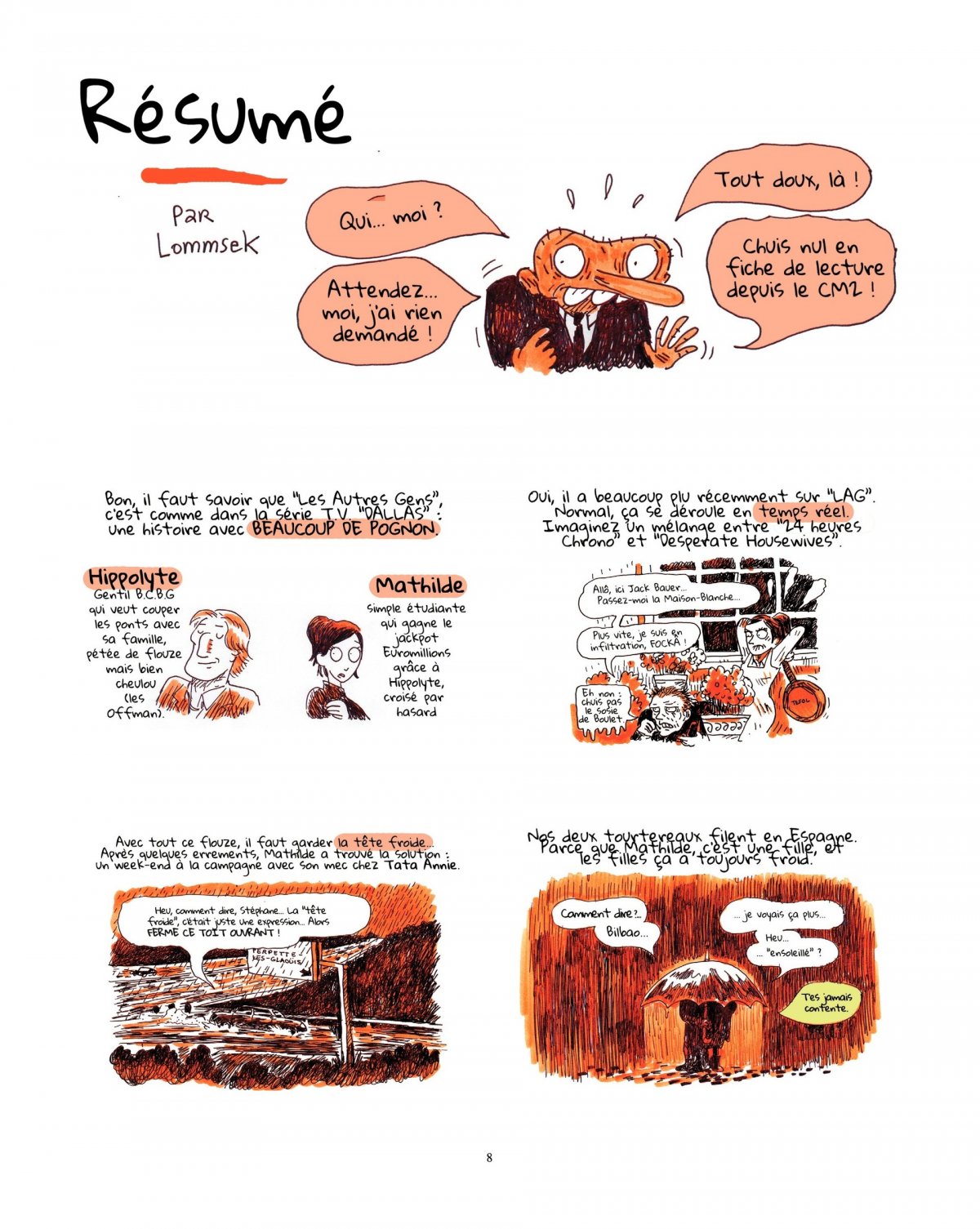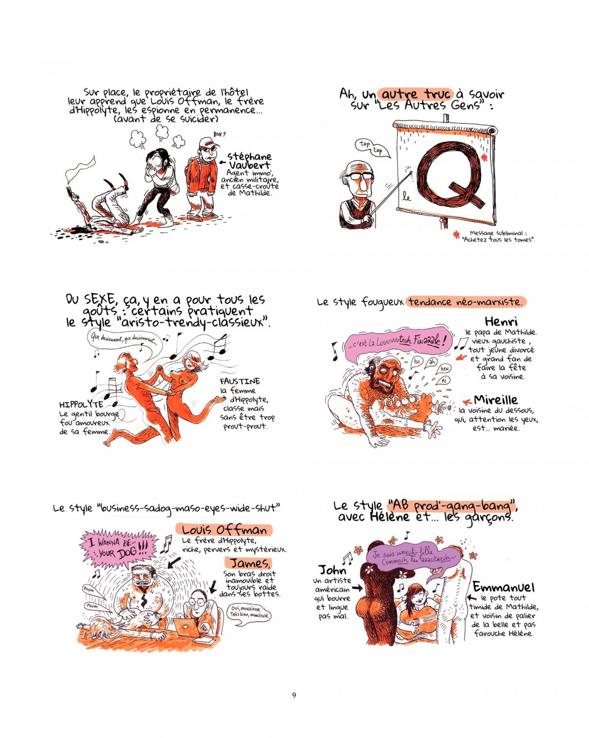 Dans le grand théâtre des Autres Gens, il y a ceux qui vont, qui viennent, qui déménagent, qui disparaissent ou qui font leur grand retour, ceux qui errent d’amour en amour, ceux qui se battent et ceux qui tirent les ficelles (ou croient les tirer). Mais chacun, dans cette immense tragicomédie, a son rôle à jouer... On retrouve bien sûr le détestable Louis Hoffman, toujours aussi obsédé par le contrôle qu’il espère pouvoir exercer sur tous ceux qui croisent sa route, ainsi que Mathilde, Faustine, Kader, Camille, Emmanuel et tous les protagonistes de cette bédénovela, entrecoupée de 6 hilarants "contes de Noël". Le Noël 2003 de Camille par Boulet, le Noël 1991 de Mathilde par Lommsek, le Noël 1985 de Louis par Terreur Graphique, le Noël 1980 de Henri par Pochep, le Noël 2005 de Emmanuel par Marion Montaigne, le Noël 2006 de Stéphane par AK. Addictif, touchant, drôle, romantique, sensuel, on ne peut épuiser les qualificatifs pour évoquer les Autres Gens, la bande dessinée qui a su réinventer la comédie romantique et qui fonctionne aussi bien sur Internet qu’en librairie.