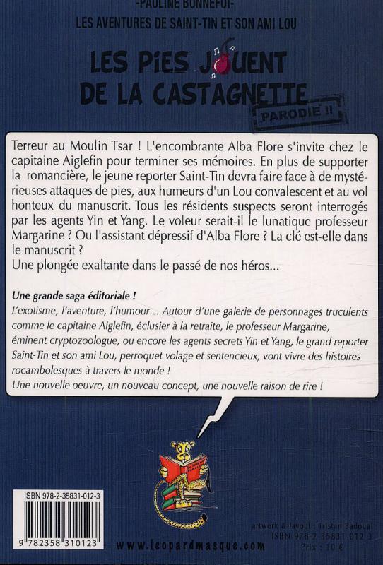 Terreur au Moulin Tsar ! L’encombrante Alba Flore s’invite chez le capitaine Aiglefin pour terminer ses mémoires. En plus de supporter la romancière, le jeune reporter Saint-Tin devra faire face à de mystérieuses attaques de pies, aux humeurs d’un Lou convalescent et au vol honteux du manuscrit. Tous les résidents suspects seront interrogés par les agents Yin et Yang. Le voleur serait-il le lunatique professeur Margarine ? Ou l’assistant dépressif d’Alba Flore ? La clé est-elle dans le manuscrit ? Une plongée exaltante dans le passé de nos héros… L’exotisme, l’aventure, l’humour. Autour d’une galerie de personnages truculents comme le capitaine Aiglefin, éclusier à la retraite, le professeur Margarine, éminent cryptozoologue, ou encore les agents secrets Yin et Yang, le grand reporter Saint- lin et son ami Lou, perroquet volage et sentencieux, vont vivre des histoires rocambolesques à travers le monde !