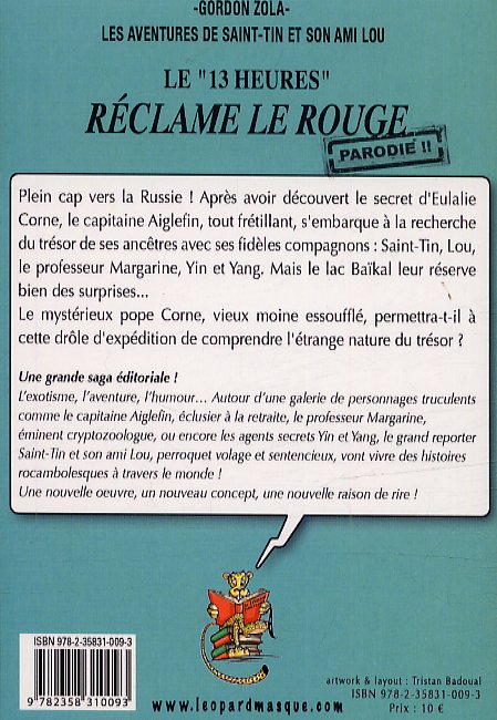 Plein cap vers la Russie ! Après avoir découvert le secret d’Eulalie Corne, le capitaine Aiglefin, tout frétillant, s’embarque à la recherche du trésor de ses ancêtres avec ses fidèles compagnons : Saint-Tin, Lou, le professeur Margarine, Yin et Yang. Mais le lac Baïkal leur réserve bien des surprises. Le mystérieux pope Corne, vieux moine essoufflé, permettra-t-il à cette drôle d’expédition de comprendre l’étrange nature du trésor ? L’exotisme, l’aventure, l’humour. Autour d’une galerie de personnages truculents commele capitaine Aiglefin, éclusier à la retraite, le professeur Margarine, éminent cryptozoologue, ou encore les agents secrets Yin et Yang, le grand reporter Saint- lin et son ami Lou, perroquet volage et sentencieux, vont vivre des histoires rocambolesques à travers le monde ! Une nouvelle oeuvre, un nouveau concept, une nouvelle raison de rire.