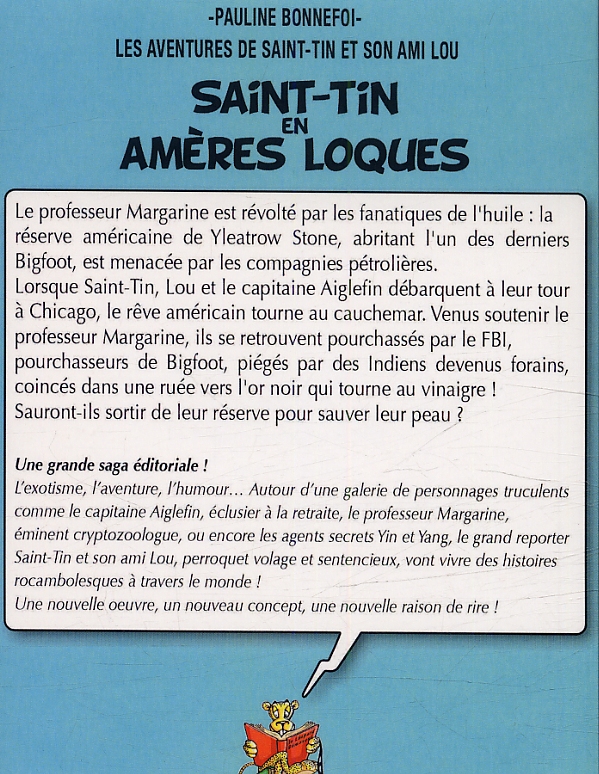Le professeur Margarine est révolté par les fanatiques de l’huile : la réserve américaine de Yleatrow Stone, abritant l’un des derniers Bigfoot, est menacée par les compagnies pétrolières. Lorsque Saint-Tin, Lou et le capitaine Aiglefin débarquent à leur tout à Chicago, le rêve américain tourne au cauchemar. Venus soutenir le professeur Margarine, ils se retrouvent pourchassés par le FBI, pourchasseurs de Bigfoot, piégés par des Indiens devenus forains, coincés dans une ruée vers l’or noir qui tourne au vinaigre ! Sauront-ils sauver à la fois la réserve et leur peau ?