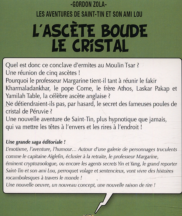 Ascète boude le cristal (L’) est le volume 18 de la série Aventures de Saint-Tin et son ami Lou (Les) par Gordon Zola, paru en 2013. Selon nos informations, il n'en existe qu'une seule édition, publiée par Léopard démasqué (Le).