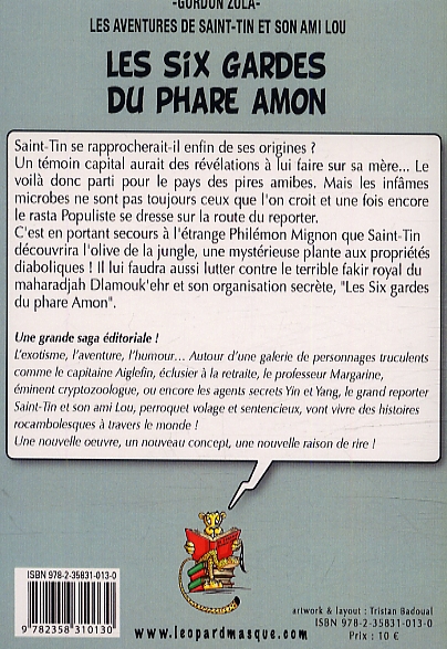Six gardes du phare Amon (Les) est le volume 12 de la série Aventures de Saint-Tin et son ami Lou (Les) par Gordon Zola, paru en 2011. Selon nos informations, il n'en existe qu'une seule édition, publiée par Léopard démasqué (Le).