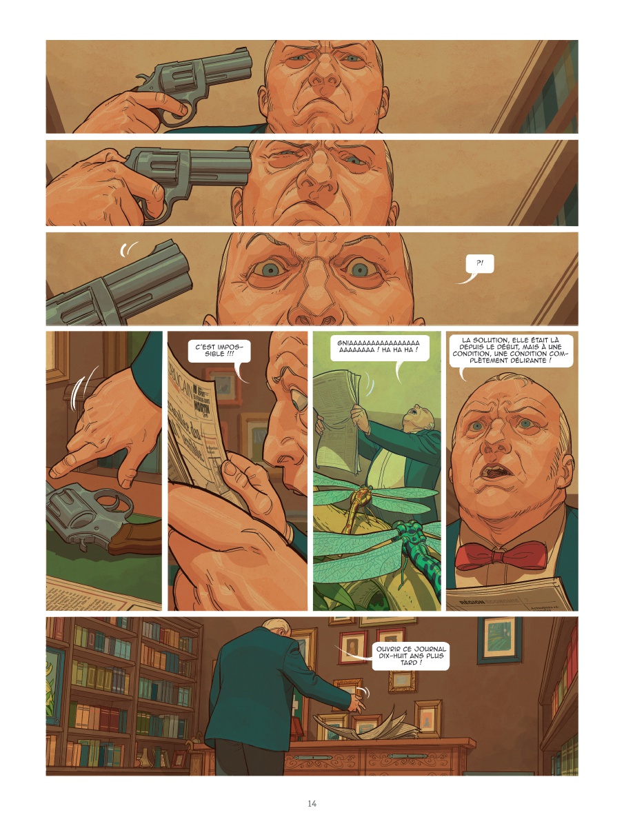 Crédule Grand-Duc veut mourir. L’enquête de sa vie a échoué... Depuis 18 ans, il cherche l’identité de Lylie, la miraculée du Mont Terrible, une petite fille rescapée du crash du vol Istanbul-Paris survenu le 23 décembre 1980. Car deux bébés étaient à bord ! Les Carville et les Vitral, deux familles que tout oppose - Les Carville, issus de la haute bourgeoisie industrielle française et les Vitral, vendeurs de frites sur la côte normande - se disputent celle que la presse ne tarde pas à surnommer Libellule. La justice finit par confier l’éducation de Lylie aux modestes Vitral. Engagé par les Carville, le détective s’est lancé dans un périple de dix-huit ans d’interrogations, d’hypothèses, de coups tordus, et d’échecs... Et puis... Alors qu’il va presser la détente, Crédule observe une dernière fois la Une du journal de l’époque... Soudain, tout est clair...Drame familial, polar parfaitement huilé et quête d’identité, l’adaptation au cordeau du roman de Michel Bussi orchestrée par Fred Duval se voit sublimer par la patte graphique et la narration de Nicolaï Pinheiro. Véritable page-turner, ce récit dense aux personnages complexes et attachants promène le lecteur dans les mystères de l’enquête autant que dans les décors des quartiers parisiens, les chemins de grande randonnée du jura ou du front de mer dieppois. À la manière d’un subtil tour de magie, Un avion sans Elle, dévoile progressivement ses secrets pour mieux cacher le tour qu’il est en train de nous jouer.