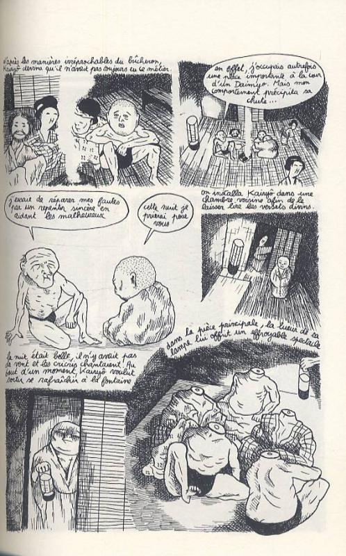 Deuxième volume de la trilogie de Grégoire Carlé, une des plus jeunes recrues de L’Association (présent aussi dans le Lapin 37), Baku 2 poursuit l’histoire de l’enfant Ichô et de son étrange famille, isolés sur une île perdue du Japon médiéval. Ici, on ramasse des lucioles pour s’éclairer, on peut même accessoirement les manger, des esprits taquins viennent la nuit vous mettre le doigt dans un verre d’eau, et des créatures plus impressionnantes encore viennent absorber vos cauchemars. Les pensées d’Ichô, elles, sont toutes entières tournées vers le visage féminin entraperçu sur un lointain bateau, dans le tome 1 de cette histoire.