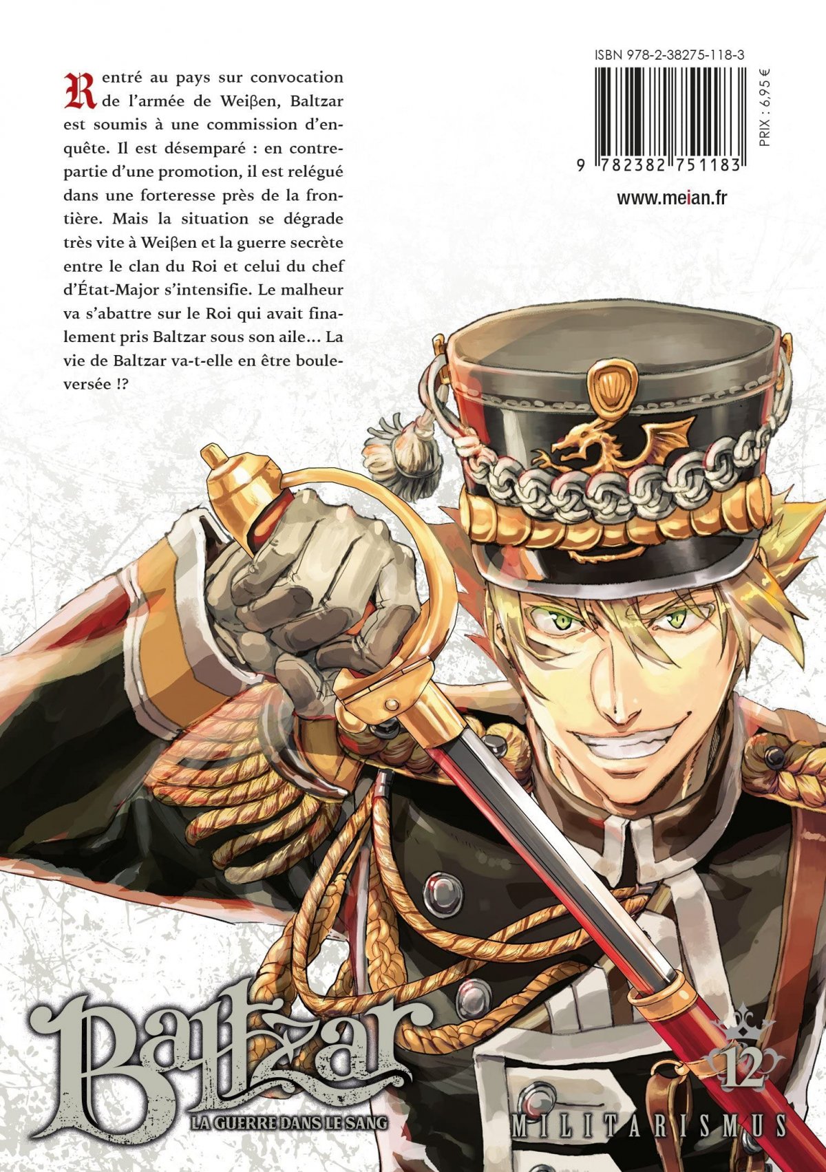 Baltzar - La guerre dans le sang 12 est le volume 12 de la série Baltzar - La guerre dans le sang par Michitsune Nakajima, paru en 2022. Selon nos informations, il n'en existe qu'une seule édition, publiée par Meian.