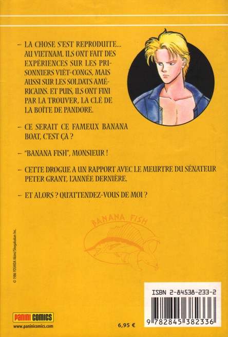 Banana Fish 9 est le volume 9 de la série Banana Fish par Akimi Yoshida, paru en 2004. Selon nos informations, il n'en existe qu'une seule édition, publiée par Panini Comics.