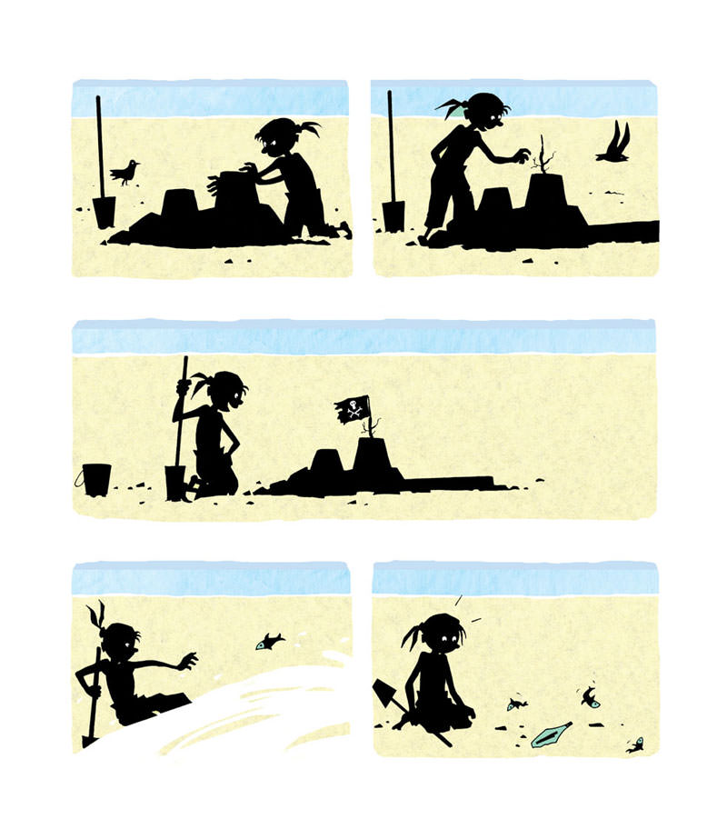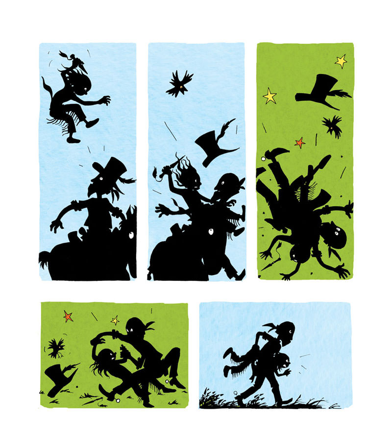 Cette BD sans paroles et en théâtre d’ombres fait suite aux ouvrages Sorcières et Magiciens, Le Pont des Pirates, Cromalin et Cromignonne et Ogres et Compagnie du même dessinateur.