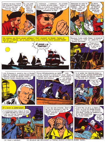 Dans A nous la Tortue, Barbe-Rouge et son fils Eric se sont quittés en très mauvais termes, se traitant mutuellement de gibier de potence et de lèche-bottes - Eric, officier du roi, se battant pour la gloire, et Barbe-Rouge continuant de se battre pour l’or malgré sa promesse de renoncer à sa carrière de forban