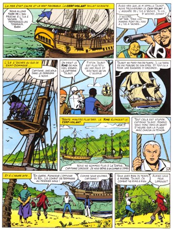 Eric et Baba débarquent donc à Kingston incognito, alors que tout le monde est occupé à recevoir triomphalement le nouveau gouverneur de la Jamaïque nommé par le roi d’Angleterre : Henry Morgan, le pirate qui a écumé les mers des Antilles pendant des années, pillant tout sur son passage ! Pendant ce temps, Eric et Baba visitent les tavernes de Kingston et, le rhum aidant, apprennent qu’en effet, deux cents fusiliers et cent cinquante soldats attendent leur heure
