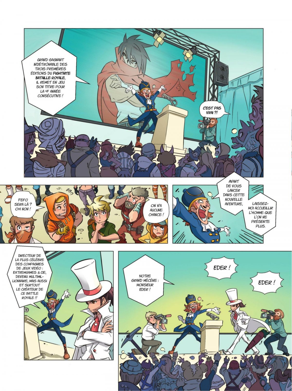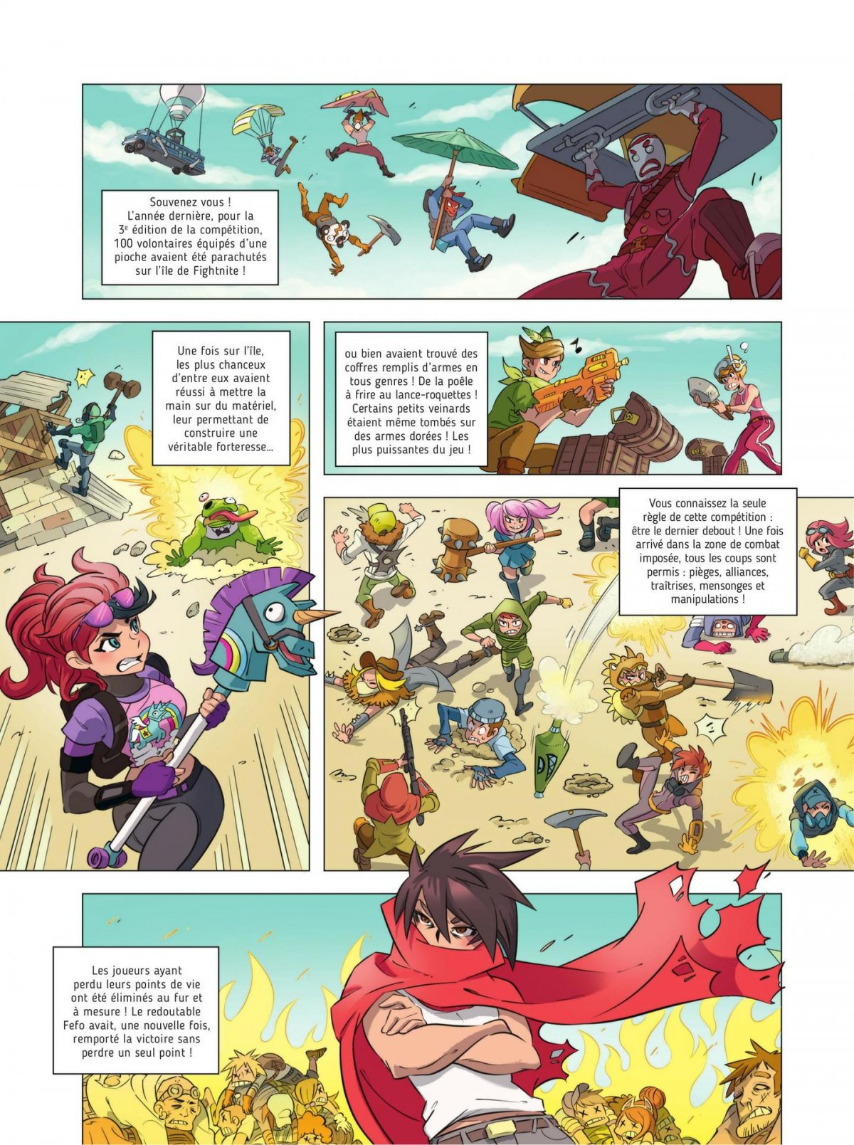 C’est le début de la compétition annuelle du Fightnite Battle Royale ! La seule règle de cette compétition : être le dernier debout ! Une fois arrivé dans la zone de combat, tous les coups sont permis : pièges, collaboration entre joueurs, traîtrise, mensonges et manipulation. Célestin y participe une nouvelle fois pour poursuivre son rêve absolu : devenir stagiaire chez ExtremGames&Cie, l’éditeur de ce jeu. Après avoir fini 98e et 99e sur 100, il ne peut que progresser… En rencontrant Mimi et Juliette, cette édition, c’est sûr, ne sera pas comme les autres…