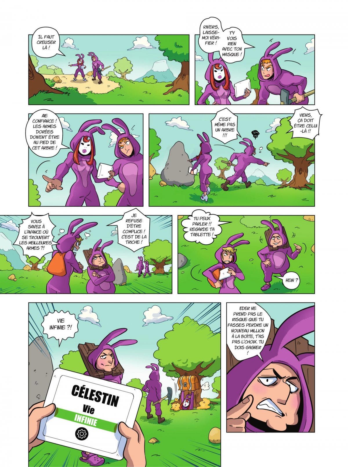 C’est la compétition annuelle du « Fightnite Bataille Royale » La seule règle être le dernier debout. Cette fois, Célestin n’a pas le choix, il doit faire équipe avec les lapins. Mais avec son petit secret, il est sûr de gagner. Sauf que Mimi et Juliette apprécient moyennement sa traîtrise. Entre les concurrents et le hors zone, la bataille va être explosive.
