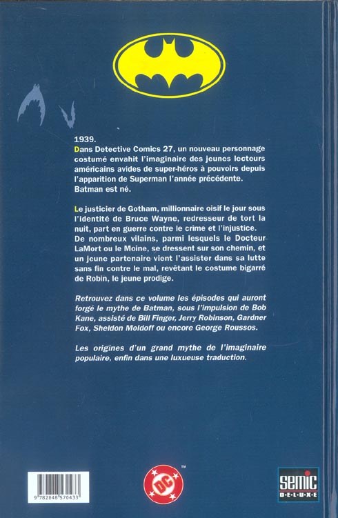 Retrouvez dans ce volume les épisodes qui auront forgé le mythe de Batman, sous l’impulsion de Bob Kane, assisté de Bill Finger, Jerry Robinson, Gardner Fox, Sheldon Moldoff ou encore George Roussos. Les origines d’un grand mythe de l’imaginaire populaire, enfin dans une luxueuse traduction.