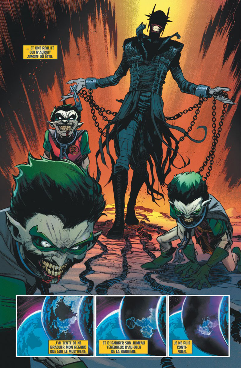 Et si, après la mort de son mari, Lois Lane avait hérité de Superman ses pouvoirs pour faire régner la justice à sa place ? Et si les Black Lanterns avaient consommé la quasi-totalité de l’Univers lors de la Crise Blackest Night ? Et si, les plus grands événements de DC avaient eu une tournure différente dans un autre monde ? Bienvenue dans les univers dystopiques du Batman qui Rit