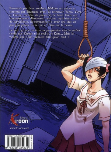 Poursuivie par deux zombies, Makoto est sauvée in extremis par Shunsuke avant de retrouver Yume, Yûya et Hanna, membre du personnel de bord. Grâce aux enregistrements découverts dans une mystérieuse salle de surveillance, ils commencent à avoir une idée un peu plus précise de ce qui se trame sur le navire.Le petit groupe continue sa progression vers la surface tandis que Kasuga reste seul avec Kana... Mais la victime sera-t-elle vraiment celle qu’on croit ?
