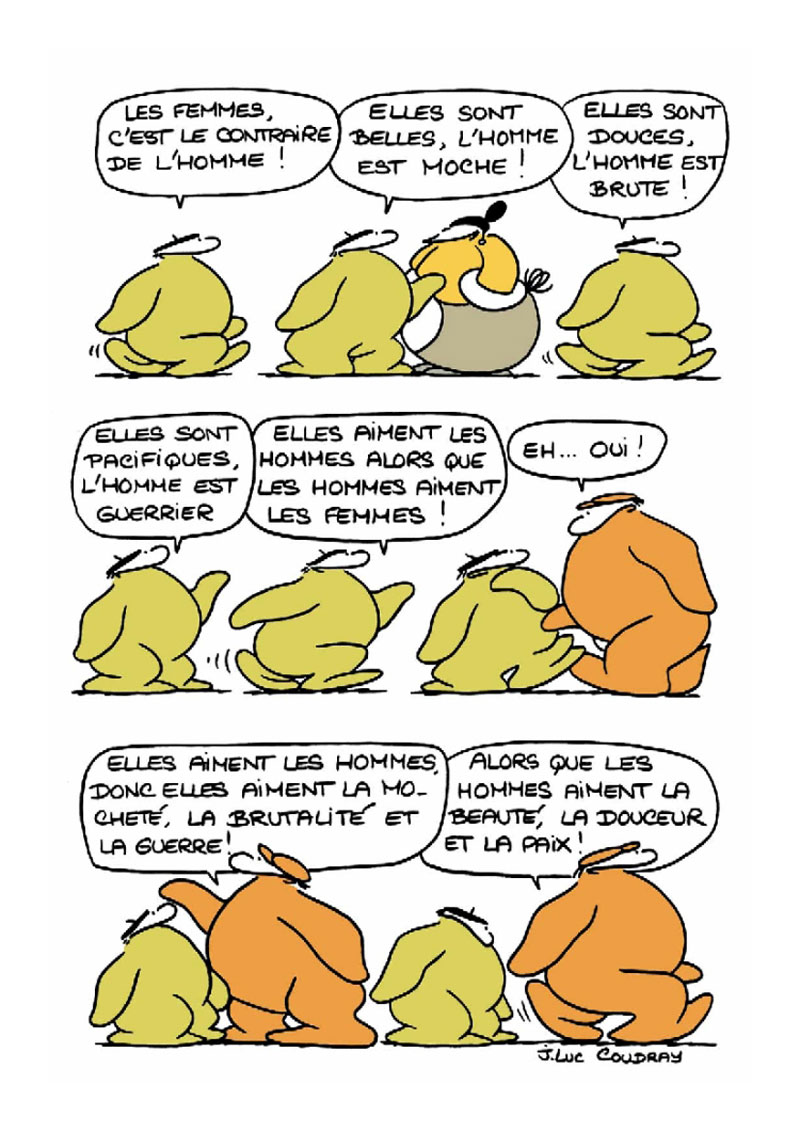 Béret ou casquette vissée sur la tête, deux hommes dissertent de l’air du temps. En quelques répliques, Jean-Luc Coudray met en scène des réflexions sur la vie ordinaire qui révèlent les petites contradictions de notre temps. Politique, art, religion, problèmes de société, tous les sujets sont abordés avec esprit et humour. Servies par un graphisme simple et rond, ces conversations se jouent habilement du langage et rendent chaque lecteur un peu philosophe... Entre Le Chat (Geluck) et Le Baron noir (Got et Pétillon), des strips d’humour aussi irrésistibles que pertinents...