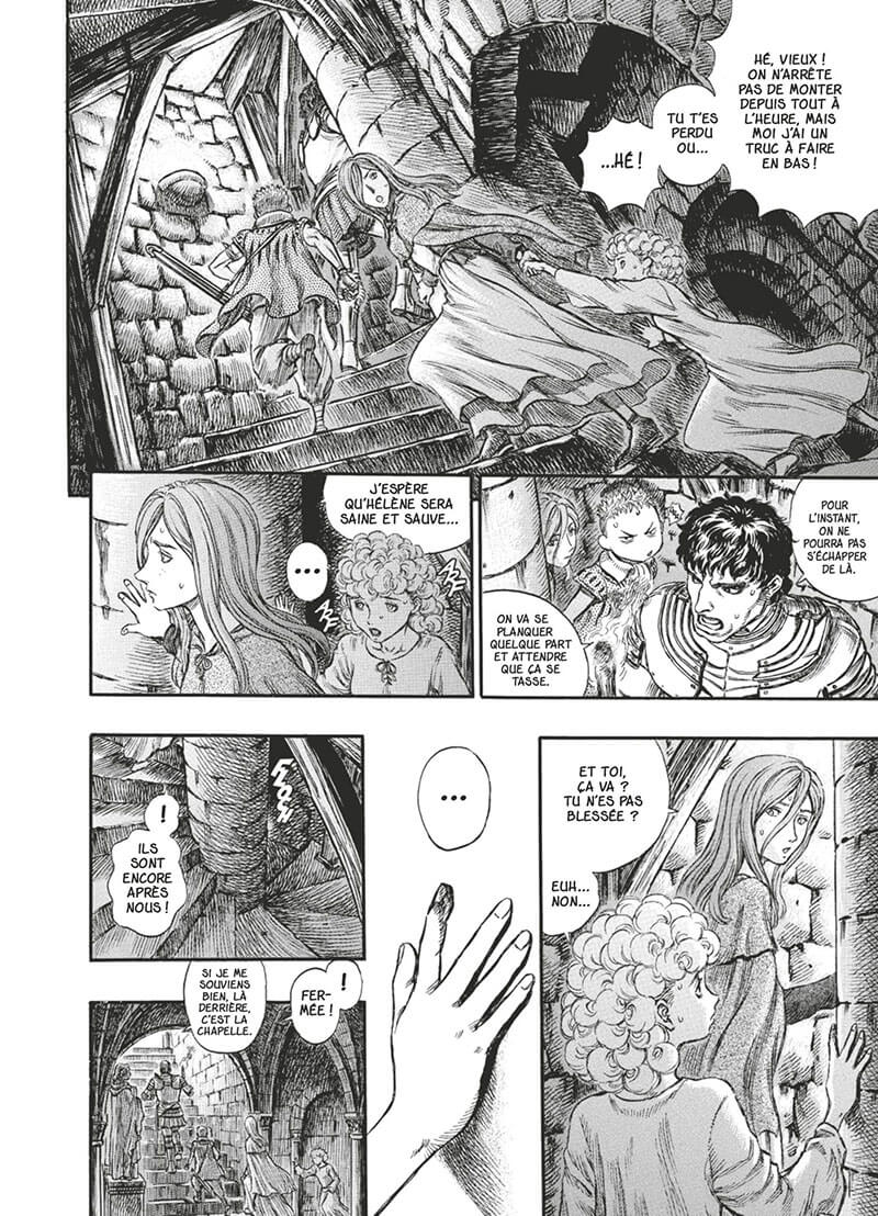 A la recherche de Casca qui a disparu, Guts s’infiltre dans la tour des châtiments. Mais une créature monstrueuse née dans la salle des tortures avale Casca et continue de s’étendre.La troupe des chaînes d’acier sacrées, Mozguz et ses inquisiteurs, ainsi que la créature font obstacle à Guts, qui ne peut rejoindre Casca. C’est alors que l’apôtre qui jusqu’ici se dissimulait entre dans la partie...