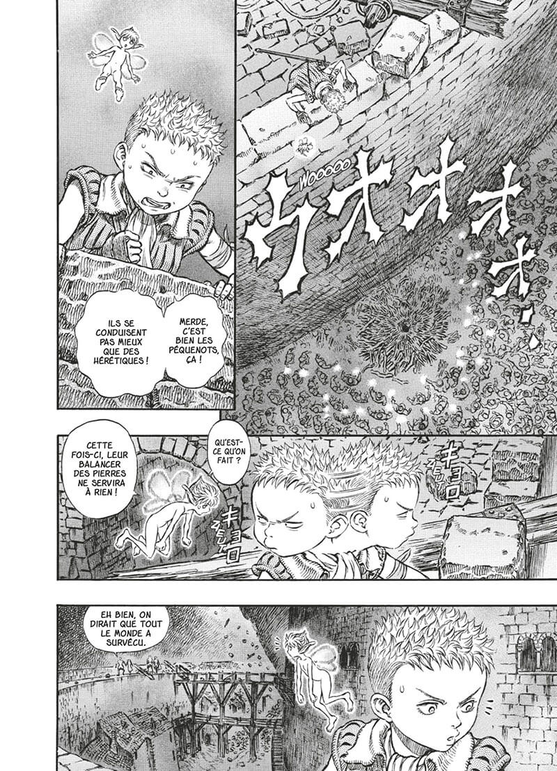 Guts est toujours est à la recherche de Casca, mais de nombreux adversaires sont sur son chemin. Casca se retrouve ligotée sur un bûcher. L’apôtre qui a transformé Mozguz et ses disciples en monstres se dirige vers le haut de la tour afin d’assister à la réalisation de son souhait : l’avènement d’un monde parfait. Quel est donc l’élément qui manque à ce monde ?
