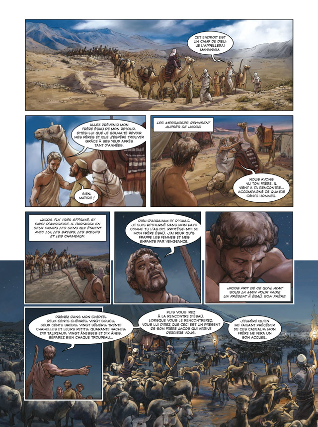 Ce second tome de l’adaptation fidèle - et oecuménique - de La Genèse regroupe les 19 derniers chapitres. Sont, entre autres, abordés : la lutte de Jacob avec Dieu, la naissance et la vie des douze fils de Jacob - qui formeront les douze tribus d’Israël -, Joseph en Égypte et le songe de Pharaon, l’enterrement de Jacob sur la terre d’Abraham et d’Isaac, la mort de Joseph...