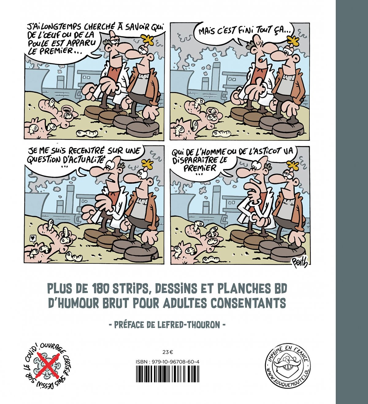 Après Profond publié chez Rouquemoute en 2017, Berth fait à nouveau du rentre-dedans auprès des amateurs d’humour brut avec Bien fait, un recueil de plus de 180 strips, dessins et planches BD pour adultes consentants, préfacé par Lefred-Thouron. À l’intérieur, le lauréat du prix Schlingo 2015 au Off of Off d’Angoulême fait l’impasse sur le covid pour parler du reste : de l’urgence climatique au climat moraliste. Sans retenue, il apporte son regard décalé et absurde sur l’actualité de notre société. Il jongle habilement avec des thématiques phares : féminisme, crise migratoire, identité de genre, religion, violences policières... Sans oublier les cases chômage, euthanasie et cannabis. Grâce à sa maîtrise du climax et son trait faussement naïf, il désamorce les situations les plus délicates pour donner à voir une vision cocasse du monde. Alors que l’humour est plus que jamais questionné, Berth contredit avec finesse ceux qui disent qu’on ne peut plus rien dire. Dessinateur de presse, il sévit autant dans la presse adulte (Siné Mensuel, L’Est Républicain) que jeunesse (Spirou, Mon Quotidien). Il a également travaillé pour La Grosse Bertha, Fluide Glacial, L’Écho des Savanes, L’Humanité, Psikopat, Zoo.