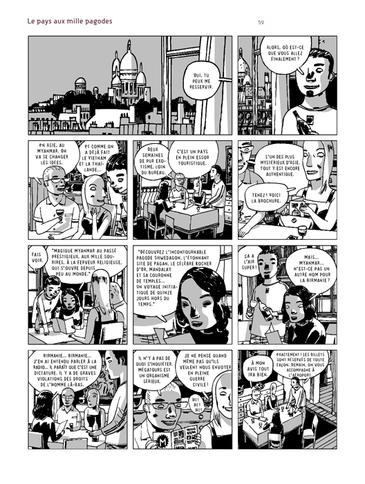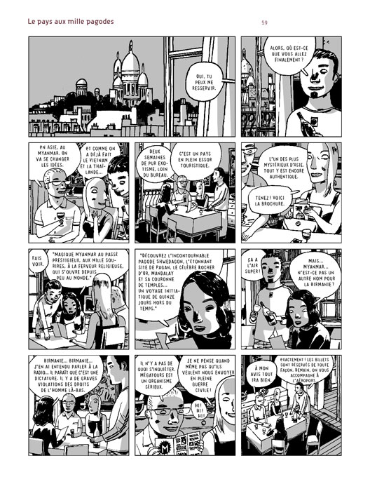 Le présent ouvrage reprend le contenu du collectif publié en 2003, qui confronte témoignages et brefs épisodes en bande dessinée, augmenté d’un récit en bd et d’articles récents de Frédéric Debomy faisant le point sur la situation actuelle en Birmanie, édité dans un format mook souple (22x29)