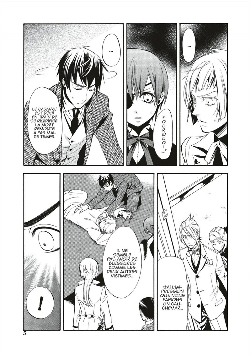 Plusieurs meurtres ont été commis à l’occasion d’une fête donnée au manoir de Phantomhive. Le maître des lieux, qui a perdu son majordome, se lance dans une enquête. Tandis que le mystère s’épaissit, la cape marron d’un pasteur au rire hautain voltige, voltige...