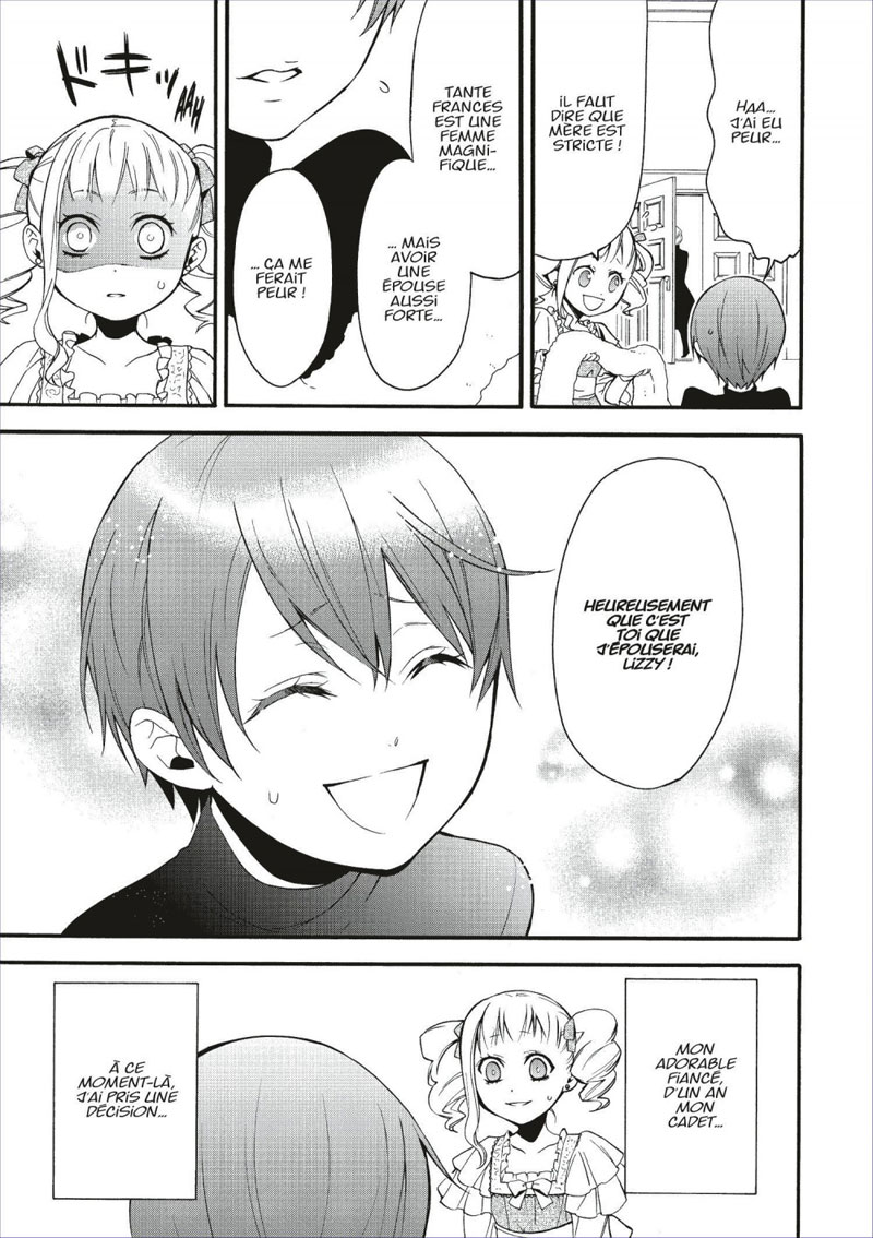 Ciel, qui a échappé de justesse à la menace des cadavres en mouvement grâce aux talents à l’épée d’Elizabeth, découvre enfin le secret de la résurrection des morts. Les cheveux blond platine du jeune et bel empereur qui détient la clé du mystère ondulent dans le vent..