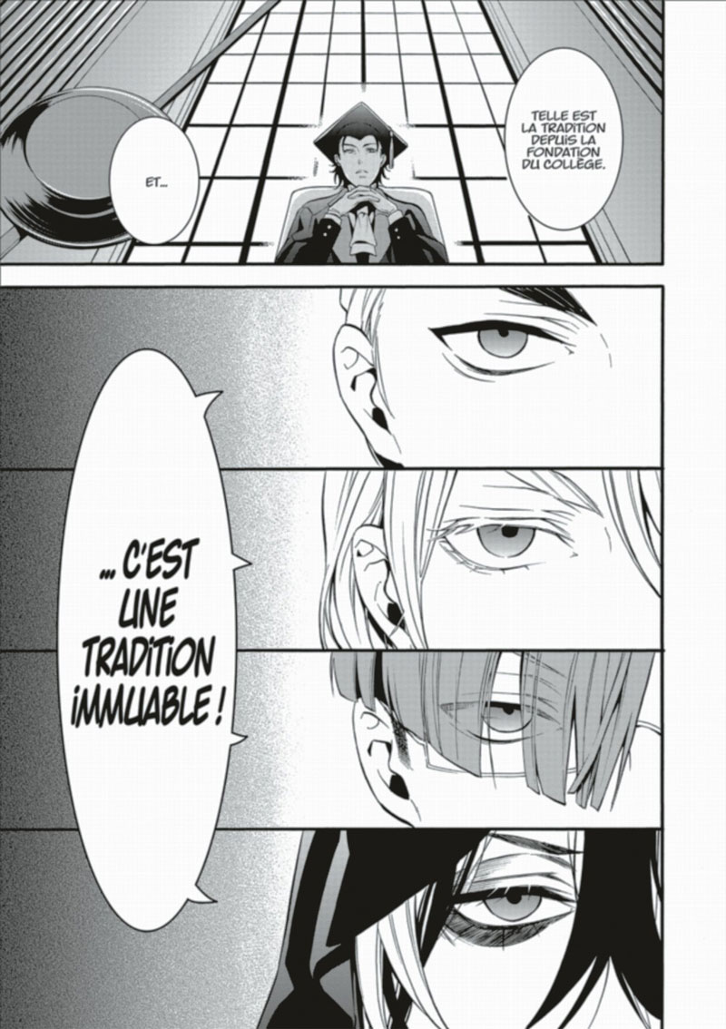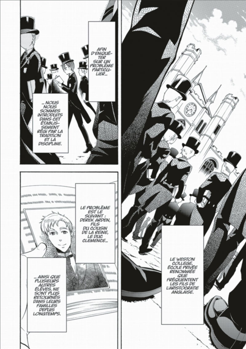 Ciel et Sebastian se sont introduits dans une école privée renommée. Le majordome s’est ainsi transformé en maître... et le maître en élève...