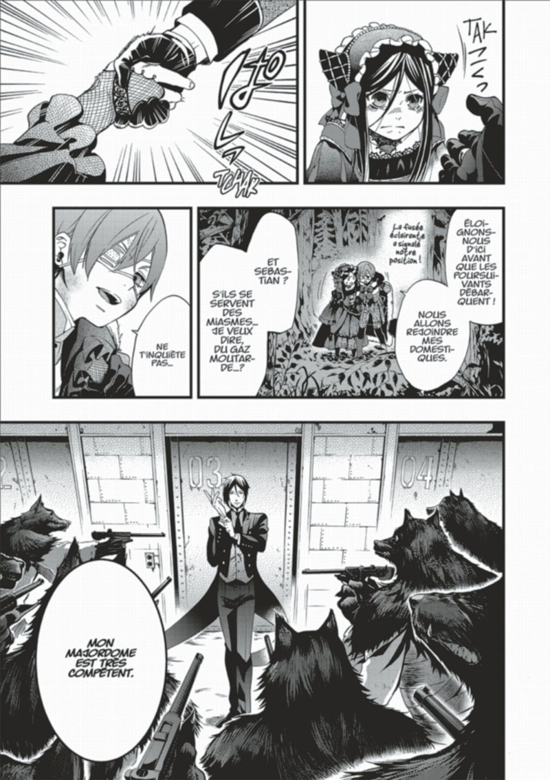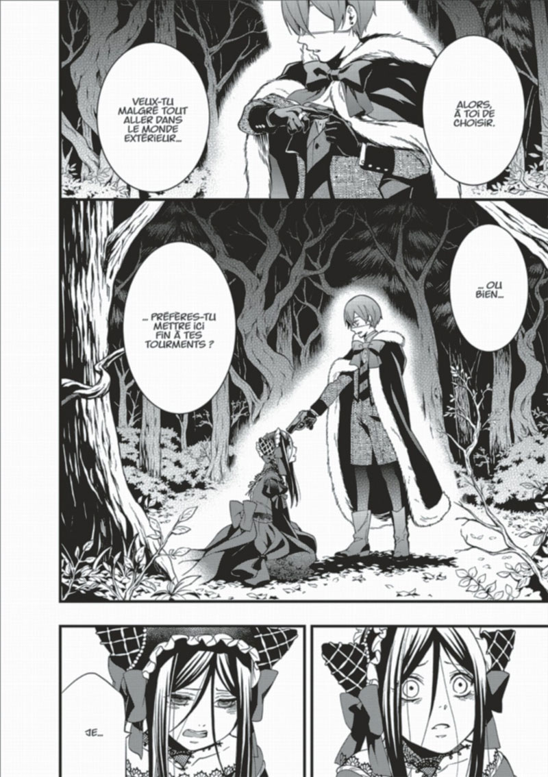 Alors que Sebastian a découvert la vraie nature de la malédiction, les habitants de Wolfschlucht montrent les dents quand Ciel enlève la sorcière verte et emporte du même coup sa « magie ultime ». Mais un monstre de couleur bise se rapproche du « noble du mal », sa cible, qui tente de s’échapper de la forêt...