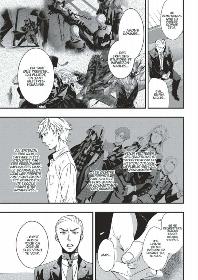Certains signes laissent à penser qu’un music-hall abrite une secte. Ciel, qui s’est mêlé aux autres visiteurs, y découvre ceux qui furent les quatre préfets du Weston College, maintenant devenus adeptes de la secte. Dans les yeux du devin, qui a détecté la vraie nature du majordome, deux trous noirs se reflètent...
