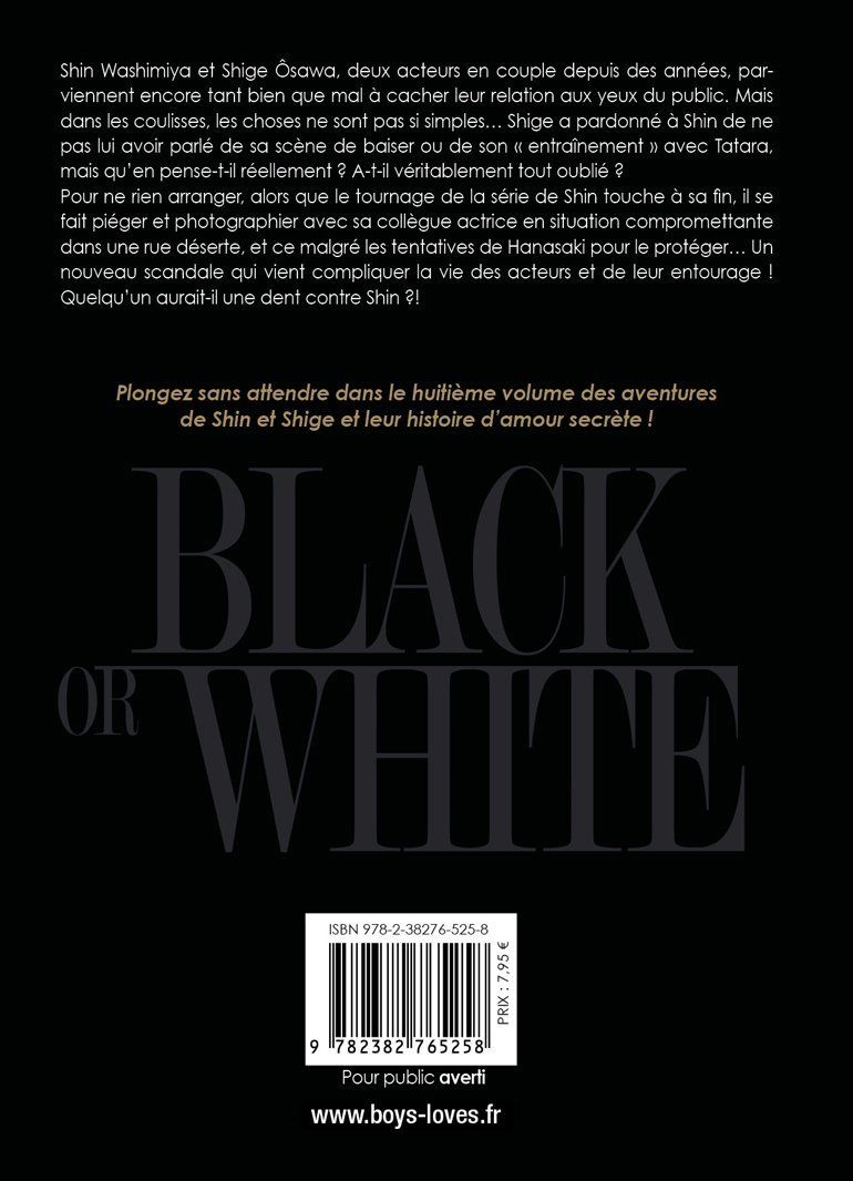 Shin Washimiya et Shige Ôsawa, deux acteurs en couple depuis des années, parviennent encore tant bien que mal à cacher leur relation aux yeux du public. Mais dans les coulisses, les choses ne sont pas si simples... Shige a pardonné à Shin de ne pas lui avoir parlé de sa scène de baiser ou de son " entraînement " avec Tatara, mais qu’en pense-t-il réellement ? A-t-il véritablement tout oublié ?Pour ne rien arranger, alors que le tournage de la série de Shin touche à sa fin, il se fait piéger et photographier avec sa collègue actrice en situation compromettante dans une rue déserte, et ce malgré les tentatives de Hanasaki pour le protéger... Un nouveau scandale qui vient compliquer la vie des acteurs et de leur entourage ! Quelqu’un aurait-il une dent contre Shin ?!Plongez sans attendre dans le huitième volume des aventures de Shin et Shige et leur histoire d’amour secrète !